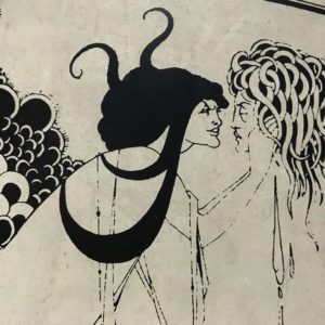 投稿公開日:2021-06-08 投稿カテゴリー:牛のよだれ 投稿コメント:0件のコメント 「SALOME」 最近、面白い品を入手した。オーブリー・ビアズリー (Aubrey Beardsley)の「サロメ」肉筆画である。59センチ×88センチ。洋紙に白の地色を塗り込み、黒色で繊細に描かれた大判の作品。作品の出自詳細は不明ではあるが、プロの技法で描かれていることに間違いはない。ゆっくりと時間をかけて調べてゆきたい。 コメントを残す コメントをキャンセルコメントコメントする名前またはユーザー名を入力してください メールアドレスを入力してコメント Web サイトの URL を入力してください。(任意) 次回のコメントで使用するためブラウザーに自分の名前、メールアドレス、サイトを保存する。