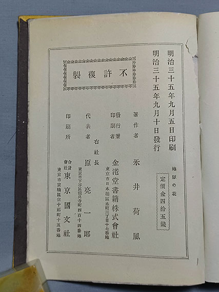 前の商品 次の商品 永井荷風 極初期初版本『地獄の花』 黄色表紙 ゾラ 森鴎外 明治35年 金港堂 外装無し完本 希少本【送料無料】 ¥80,000 商品名 :『地獄の花』 黄色表紙 著 者 :永井荷風 時 代 :明治35年9月10日 発 行 :金港堂 ページ数 :230 サイズ :135mm X 188mm コンディション :表紙に少キズ 補 足 :希少本 <商品についての解説> ゾラの影響を受け、永井荷風が書き下ろした「地獄の花」元版本。森鴎外が絶賛した貴重な一冊。 在庫切れ カテゴリー: 代引不可, 古書籍, 近代文学書